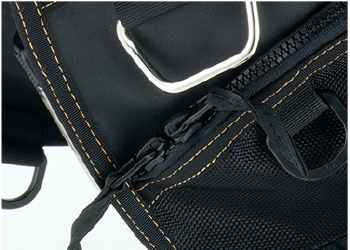 - 18個のDリングと両サイドのディジーチェーンでダイバーの好みに合わせたアクセサリーの装備が可能